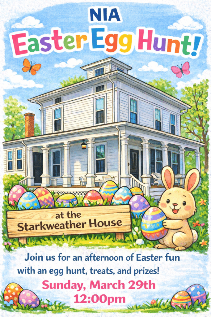 Come enjoy our NIA Easter Egg Hunt with your little ones. Gather for family, friends and a wonderful day creating memories for you and your children for years to come. Sunday March 29th 12:00. Rain date Saturday April 4th at 12:00